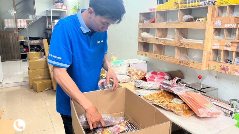 Hỗ trợ đóng thùng carton, gia cố chống va đập. Thực phẩm khô hỗ trợ hút chân không tại kho để bảo quản tốt hơn trong quá trình vận chuyển.